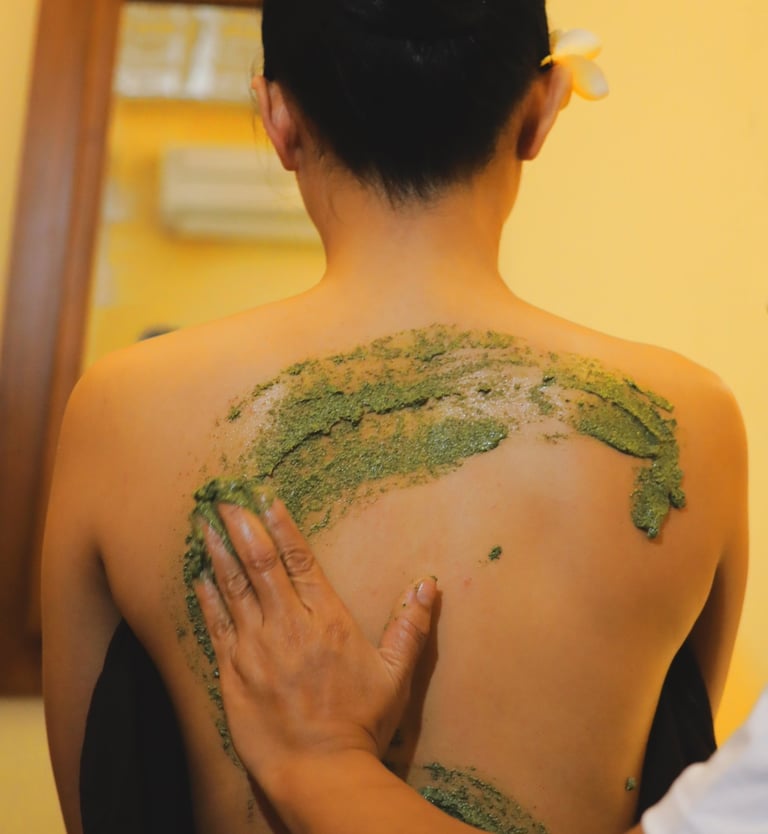 身体磨砂和裹敷: 这些护理通常使用海盐、草药和香料等天然成分来去除角质和恢复皮肤活力。